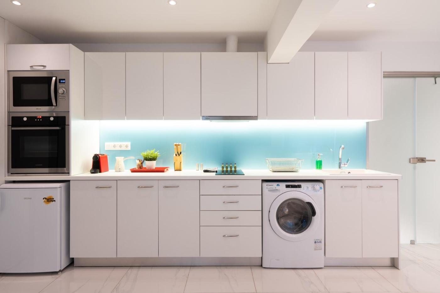 One-Bedroom Apartment. Featuring a private entrance, this air-conditioned apartment comprises a kitchen, 1 bedroom and 1 bathroom with a shower and a hairdryer. In the well-fitted kitchen, guests will find a stovetop, a refrigerator, kitchenware and an oven. The apartment features tiled floors, a seating area with a flat-screen TV, a washing machine, a tea and coffee maker, as well as a dining area. The unit offers 1 bed.