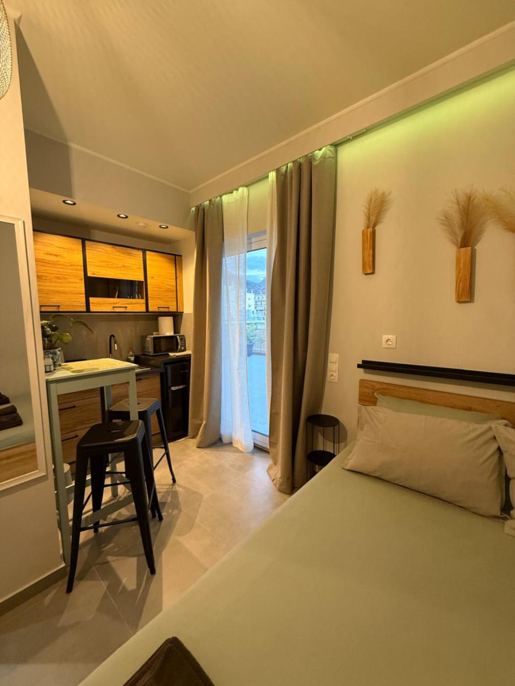 One-Bedroom Apartment. The air-conditioned apartment features 1 bedroom and 1 bathroom with a shower and a hairdryer. The apartments kitchenette, which has a refrigerator and a microwave, is available for cooking and storing food. Featuring a terrace with mountain views, this apartment also provides a coffee machine and a flat-screen TV. The unit offers 1 bed.