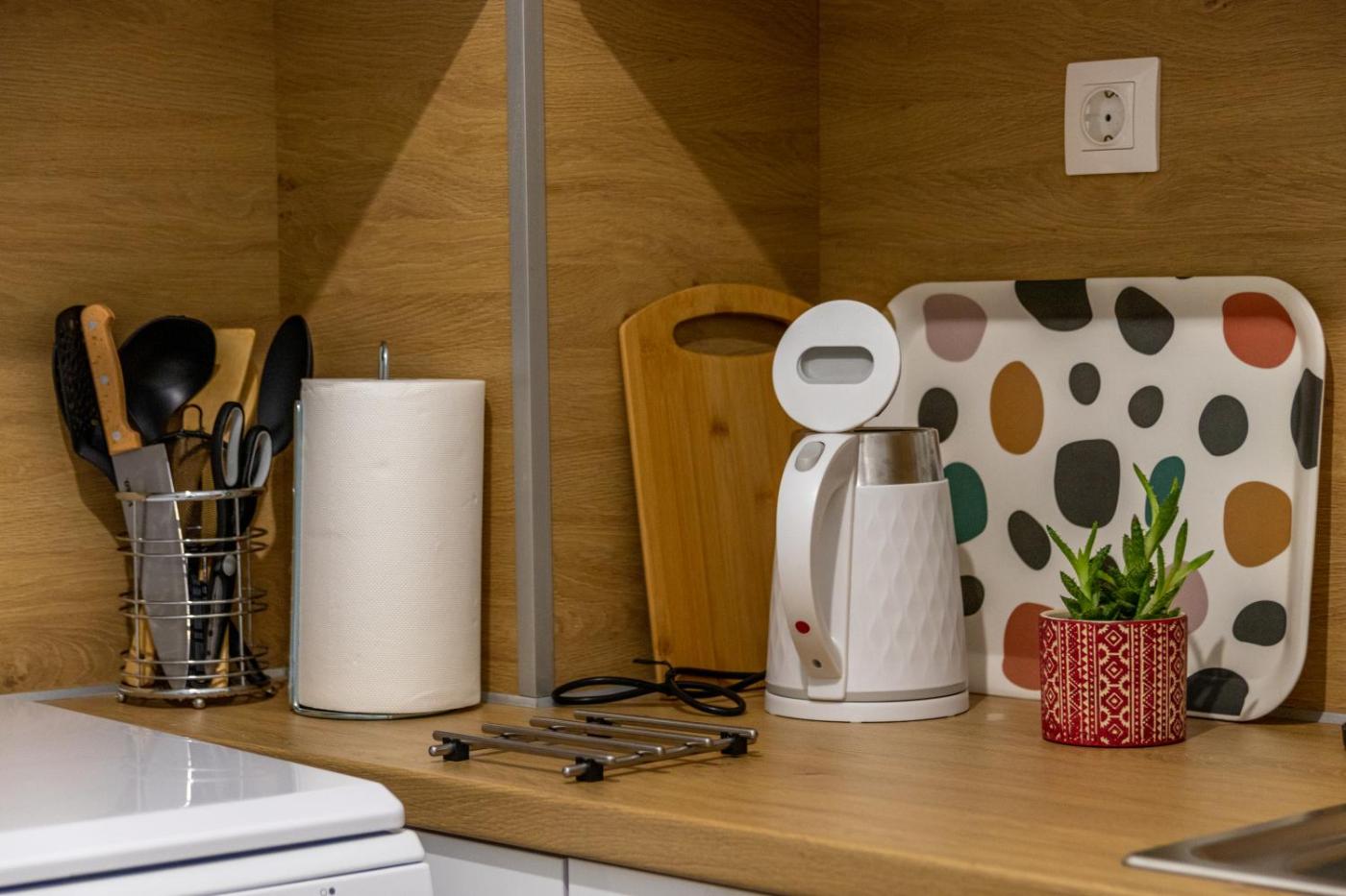 One-Bedroom Apartment. Boasting a private entrance, this air-conditioned apartment includes 1 bedroom and 1 bathroom with a shower. In the well-fitted kitchen, guests will find a stovetop, a refrigerator, kitchenware and an oven. The apartment offers a washing machine, soundproof walls, a tea and coffee maker, a wardrobe, as well as a flat-screen TV with streaming services. The unit has 1 bed.