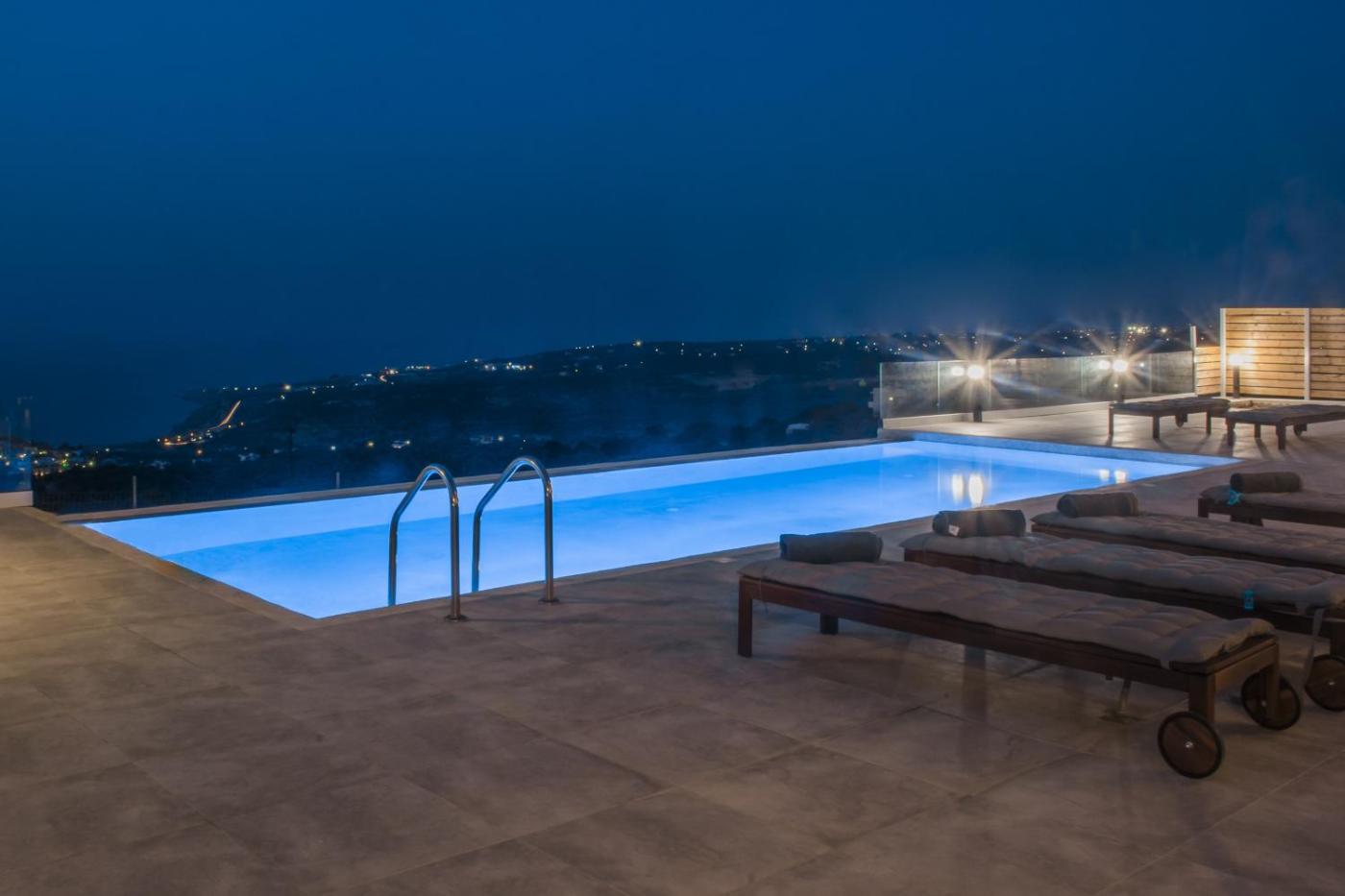 Set in Yeránion, Eva Villas West with infinity pool & and panoramic sea view offers a balcony with sea and mountain views, as well as a seasonal outdoor pool, wellness packages and beauty services. With pool views, this accommodation provides a patio. The villa also offers free WiFi, free private parking and facilities for disabled guests.